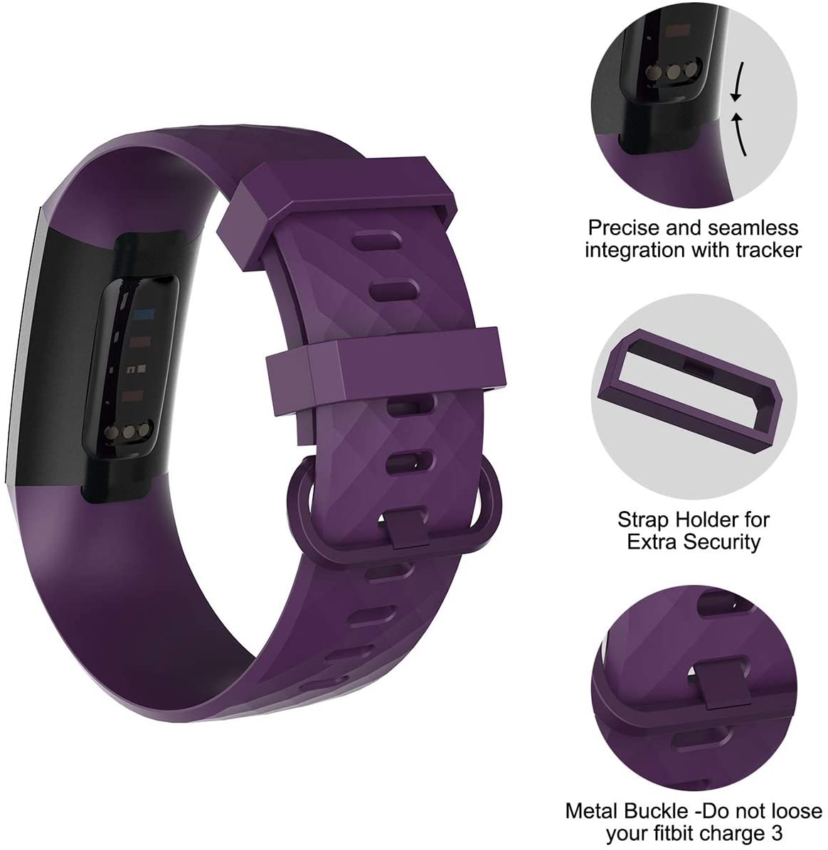 - Seamless Match - Fits well with no gap. Simple to install and remove, NO tool required. The end of the band has a lug, which fit your charge 3 smart watch in place and locked precisely & securely.
