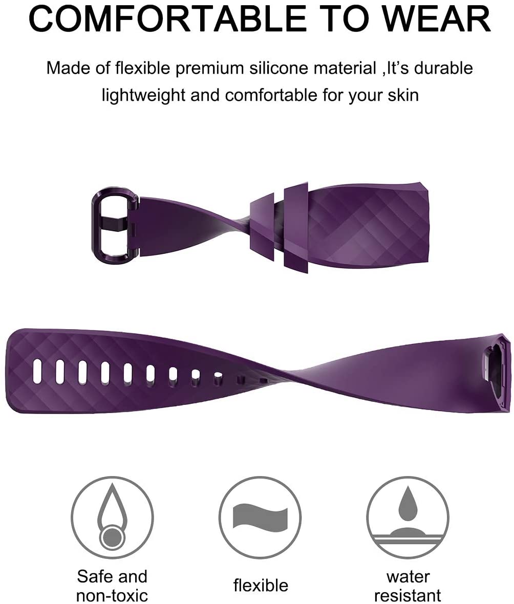 Velavior Waterproof Bands for Fitbit Charge 3/ Fitbit Charge 4/ Charge3 SE, Replacement Wristbands for Women Men Small Large (Purple, Large)