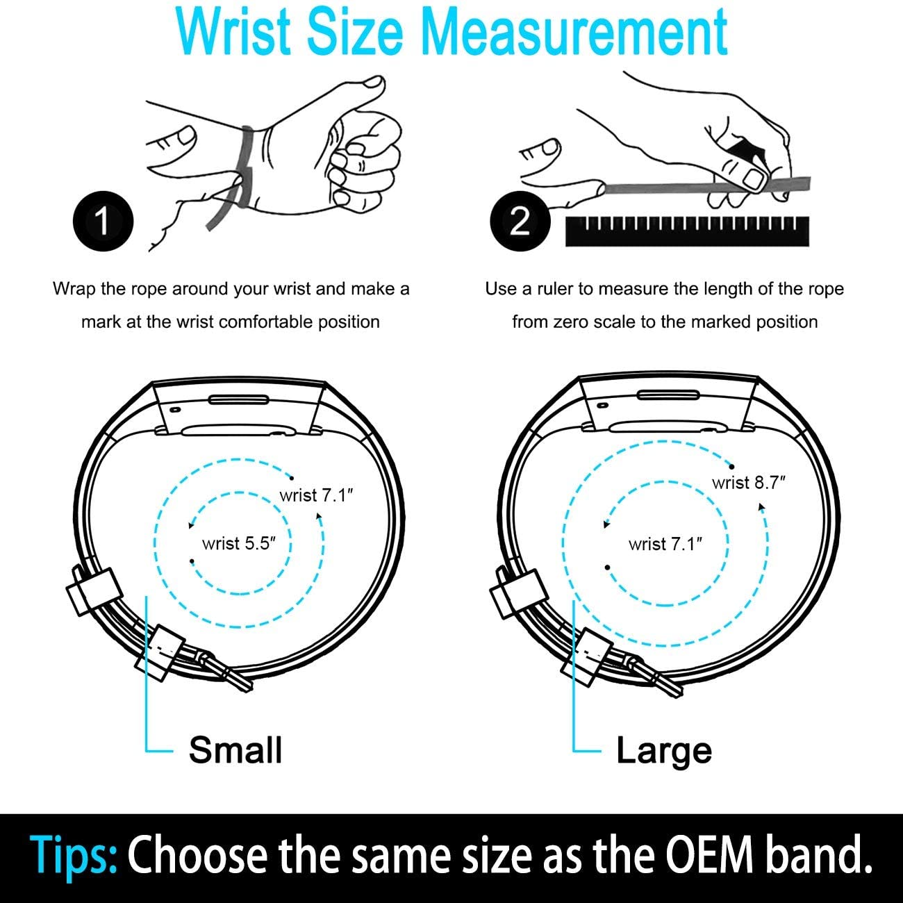 - Two Adjustable Size - Small is for 5.5" - 7.1" wrist, Large is for 7.1" -8.7" wrist. These Replacement Bands are for Fitbit Charge 3, Fitbit Charge 4 and Charge 3 SE only, NO Fitbit Charge 3/4 tracker included.